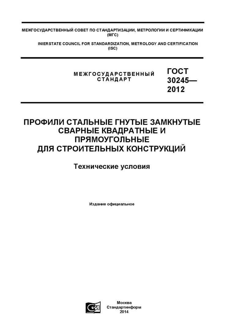 ГОСТ 30245-2012 «Профили стальные гнутые замкнутые сварные квадратные и прямоугольные для строительных конструкций. Технические условия»